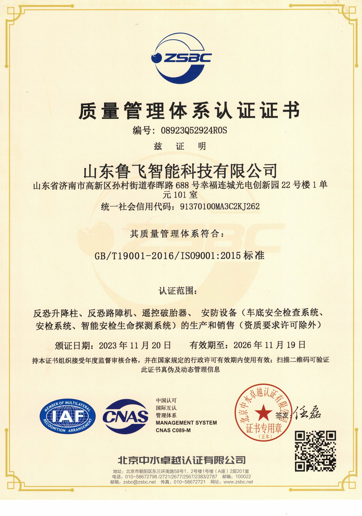 魯飛智能科技有限公司是集“設計、研發(fā)、生產、銷售”為一體的高新技術企業(yè)。專業(yè)從事反恐防暴升降路樁、防暴路障、破胎器、車底檢測系統、微震生命探測儀、安檢門、安檢機、拒馬、電動伸縮門、無人機反制系統、無人機反制槍、車載無人機反制、便攜式無人機反制槍等系列產品的生產與銷售。